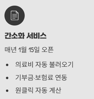 ➡ 간소화 서비스 오픈 후 자동 연동 가능, 일부 누락 항목은 수기 입력 필요