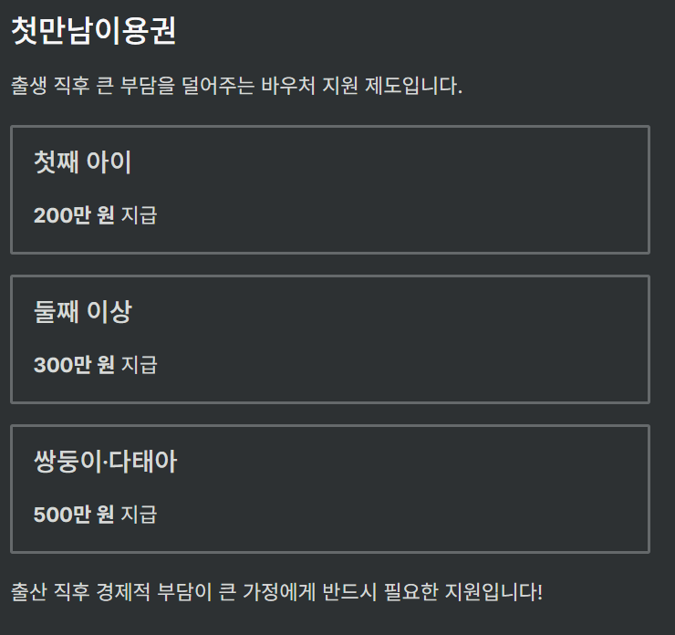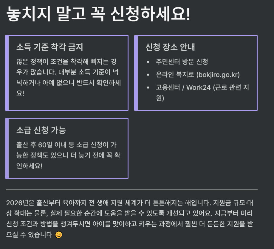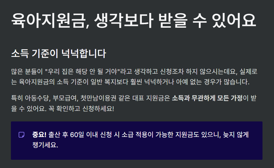 아이를 맞이하고 키우는 과정에서 훨씬 더 든든한 지원을 받으실 수 있습니다 😊