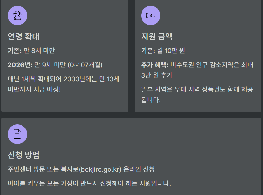 앞으로 매년 1세씩 확대되며, 2030년에는 만 13세 미만까지 지급 예정!