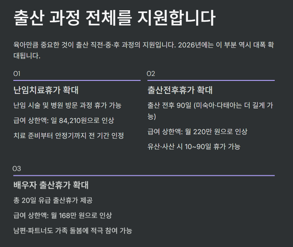 육아만큼 중요한 것이 출산 직전·중·후 과정의 지원입니다. 2026년에는 이 부분 역시 확대됩니다!