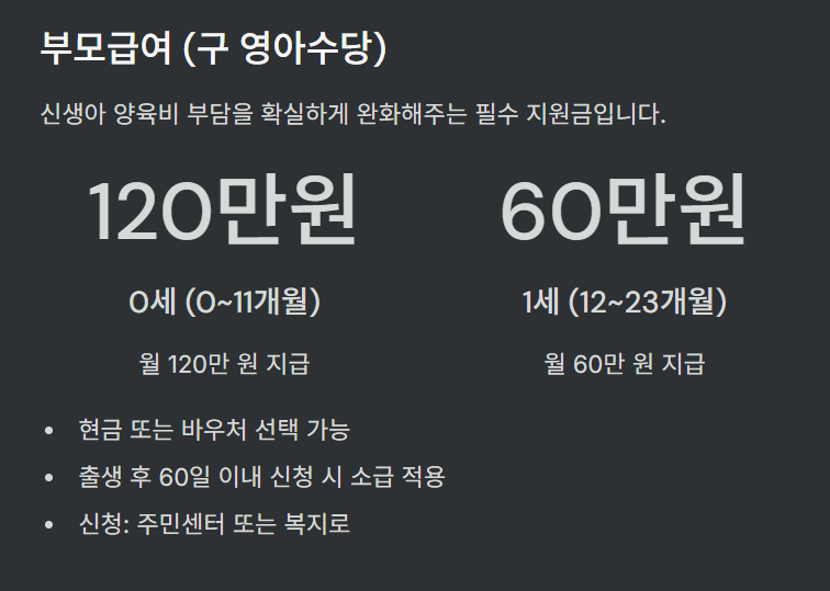 | 부모급여 | 0세·1세 | 인상된 급여액 적용 |